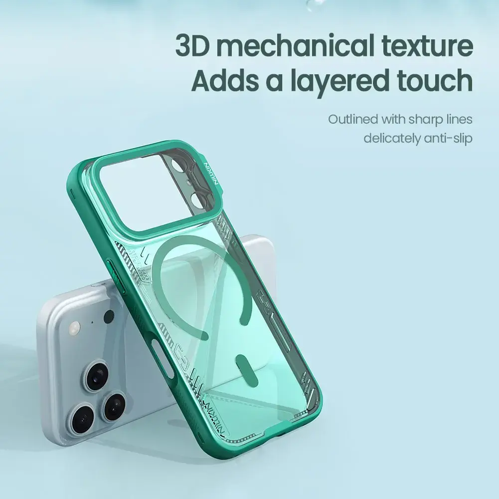 Nillkin Iceblade Prop Magnetic Cover for Apple iPhone 17 Pro Twilight Gray combines reliable day-to-day protection with a refined profile, pairing durable materials with a confident grip.The slim silhouette slips easily into a pocket while slightly raised edges help shield the display and camera from everyday scratches.The soft inner lining cushions the phone from bumps, and the flexible frame makes installation effortless without compromising stability.Precisely cut openings maintain access to buttons and ports