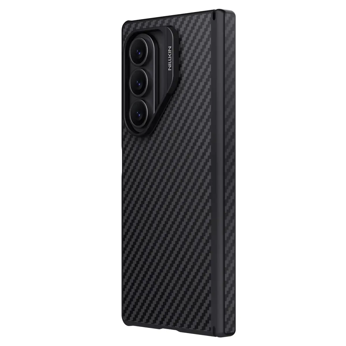 Nillkin Synthetic Fiber PRO Magnetic Hard Case for Samsung Galaxy Z Fold 7 Black combines reliable day-to-day protection with a refined profile, pairing durable materials with a confident grip.The slim silhouette slips easily into a pocket while slightly raised edges help shield the display and camera from everyday scratches.The soft inner lining cushions the phone from bumps, and the flexible frame makes installation effortless without compromising stability.Precisely cut openings maintain access to buttons and ports