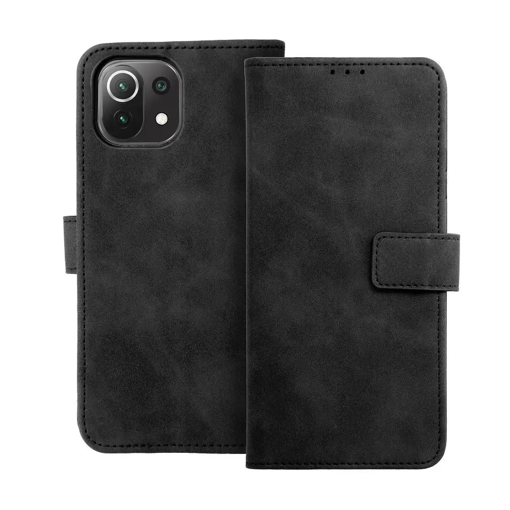 TENDER holster. Made of soft, pleasant to the touch material. Equipped with three pockets for banknotes and documents. Fastened with a magnet. The TENDER holster provides full protection of the device, securing not only its back, but also the screen. Built-in magnet clasp prevents accidental opening of the case, keeping your phone safe. Three internal pockets, visible after opening the flap, allow for safe storage of documents and banknotes. The perforation on the bend makes the holster fold to the TV stand position. It is a comfortable stand that facilitates watching movies. Installation of the case is extremely simple: the flexible insert allows you to easily place your phone in it. Material: eco leather