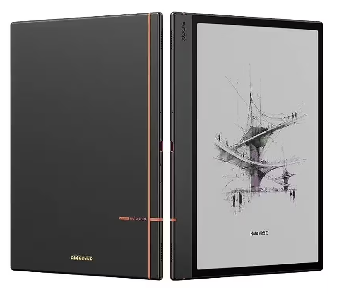 Model: Onyx Boox Note Air 5 C Category: E-book reader / Tablet Color: Gray Series: Boox Operating System: Android 15 E-Ink Technology: Kaleido 3 Input: Touchscreen RAM: 6 GB Internal Storage: 64 GB Battery: 3700 mAh Additional Functions: USB Type-C with OTG support, G-sensor, fingerprint reader in power button, built-in microphone, Pogopin connector (for dedicated keyboard case) Display Size: 10.3 inches Resolution: 2480 x 1860 pixels Backlight: Yes Connectivity USB: 1 x USB Type-C Wi-Fi: Yes Bluetooth: Yes Supported File Formats PDF, DJVU, CBR, CBZ, EPUB, AZW3, MOBI, TXT, DOC*, DOCX*, FB2, CHM, RTF, HTML, ZIP, PRC, PPT*, PPTX*, PNG, JPG, BMP, TIFF, WAV, MP3(*DOC and DOCX require additional software installation) Processor Qualcomm Octa-core 2.4 GHz + BSR GPU Included Accessories E-reader Wacom magnetic stylus (BOOX Pen 3) USB Type-C cable SIM / SD card tray removal tool