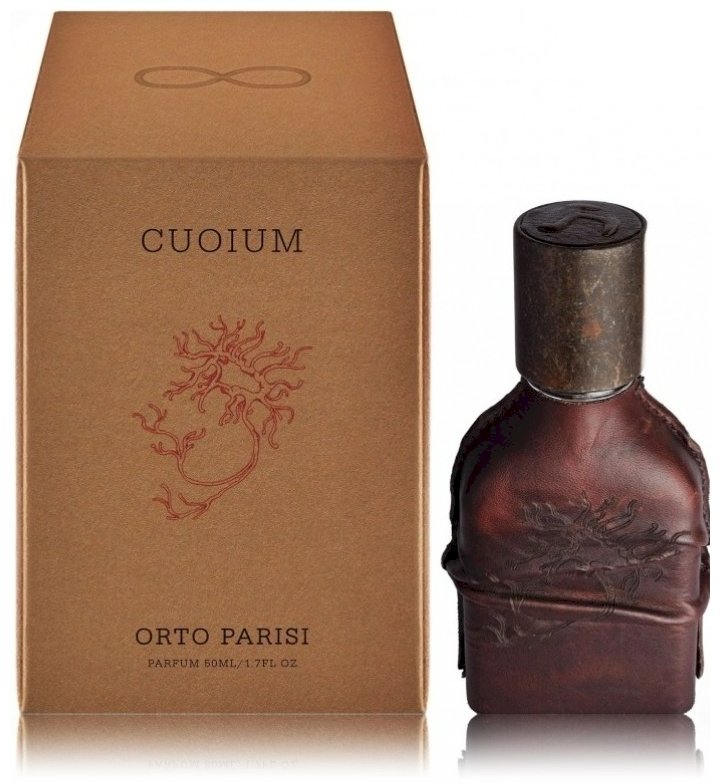 ParfüümikoostisOrto Parisi Cuoium Parfum 50 ml on unisex, väga intensiivne ja provokatiivne „nahk-loomne-puuline“ lõhn. Avapool on terav ja sädelev – musta pipra ja mandariini noodid domineerivad, andes lõhnale vürtsika ja veidi tsitruselise algusega. Südamenootid avaldavad violeti, mis annab ootamatu, pehme puudri kontrasti. Põhjanootid on nahk, viiruk, seedripuu, muskus, patchouli, vanill ja väljendunud loomseid noote, luues väga sügava, suitsu ja raske viimistlusega.