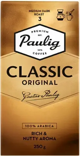 Paulig Classic ir izsmalcināts kafijas maisījums, kas pagatavots, grauzdējot kvalitatīvākās Latīņamerikas kafijas pupiņas. Garša ir noturīga un harmoniska, un tajā jūtams noapaļots riekstu aromāts.