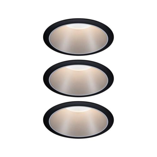 Love at second glance! The recessed luminaires Cole in black/silver blend almost seamlessly into the ceiling, thanks to the recessed lamps. Once you have spotted it though, you can hardly take your eyes off it. The light of the recessed coins on the matt silver surface provides soft, glare-free lighting. What’s more, they feature brilliant technology: The replaceable LED coins provide pleasant, warm white light and can be dimmed in three stages with a conventional light switch.Paulmann 934.08. Product type: Recessed lighting spot. Fitting/cap type: Non-changeable bulb(s). Suitable for indoor use, Plafond shape: Round. Number of bulbs: 1 bulb(s), Total power: 6.5 W, Luminous flux: 460 lm. International Protection (IP) code: IP44. Dimmable. Input voltage: 230 V. Product colour: Black, Silver