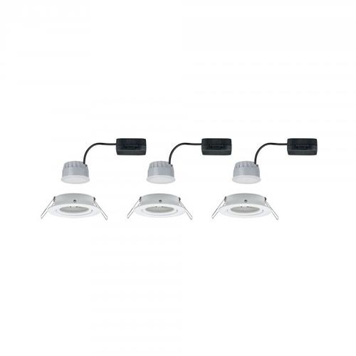 With their modern design, Nova recessed spotlights blend in with all styles of furnishing. Efficient, long-lasting LED lamps are included, and guarantee a comfortable atmosphere with their warm white light. They can easily be fixed using a clamp in the inside of the mounting ring - snap rings are thus not required.Paulmann 934.85. Product type: Recessed lighting spot, Suitable for indoor use, Plafond shape: Round. Number of bulbs: 3 bulb(s), Bulb type: LED, Colour temperature (max): 2700 K, Luminous flux: 630 lm. International Protection (IP) code: IP23. Dimmable. Product colour: White