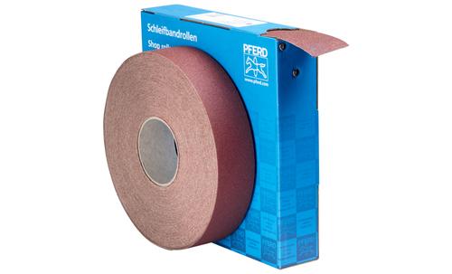 The brown cloth-backed variant is suitable for universal, heavy-duty use on alloyed and non-alloyed steels, as well as non-ferrous metals. The carton has a tear-off edge for separating the sections of abrasive belt at the workplace.