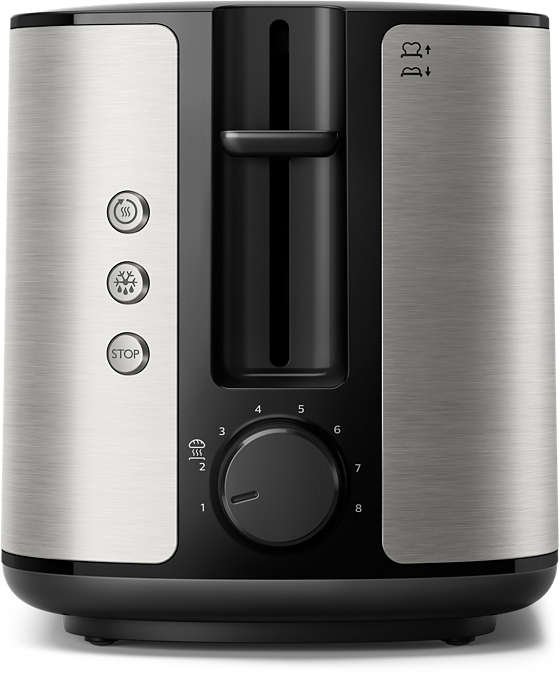 Philips Viva Collection HD2650/90 tosti masin koos modernse disainiga ja õiged funktsionaliteedega annab perfektselt, ühtlaselt pruunist tosti iga kord. 950 W võimsusega tosti leib kiiresti ja efektiivselt. Extra-laiad lõikud sobivad mitme tüüpi leibade jaoks – alates tihedatest tükidest kuni bagettideni. See sisaldab 8 pruunist seadet, defrosti ja reheat funktsiooni ning peatuse nupu, mis võimaldab kiiresti peatada. Kõrgu tõstelööv tagab väiksemate asjade turvaline eemaldamine, samal ajal kui eemaldatav kruumtrükk teeb puhastuse lihtsaks. Elegantne must teraskarva kastetegu lisab kõikidele köögile premiumi