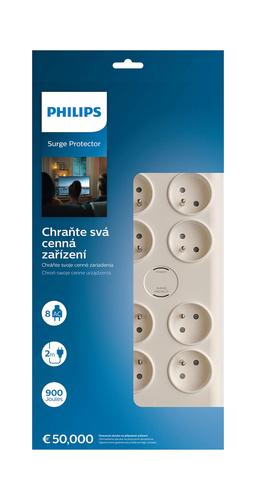 PHILIPS SPN7080WA/60 ülepingekaitse valge 8 pistikupesaga 2 m