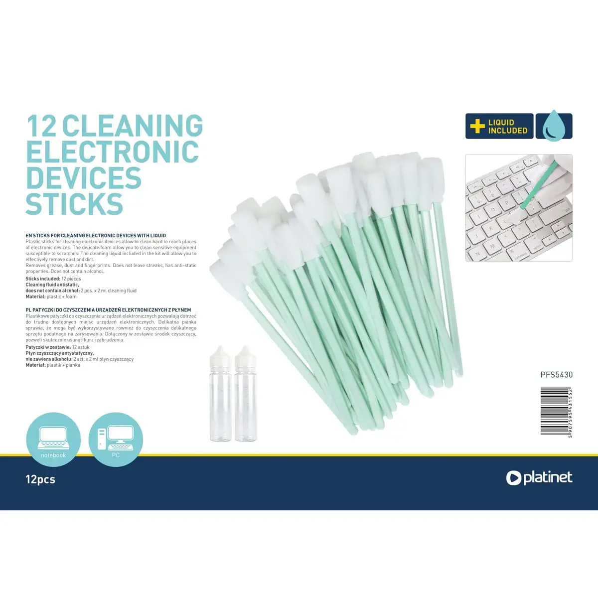 Platinet PFS5430 puhastusvardad seadmetele | 12 tk | Mittealkohoolne vedelik 2 x 2 ml