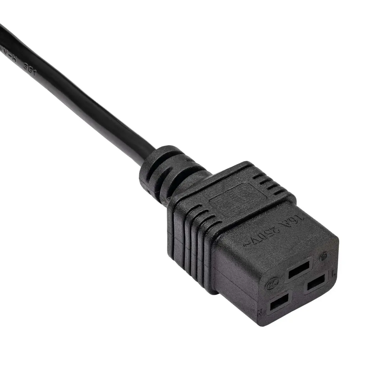 The cable is terminated with IEC C19 and C20 plug, adapted to supply a maximum of 250V with a load of up to 16A. Works perfectly as an extension of the basic power cord.