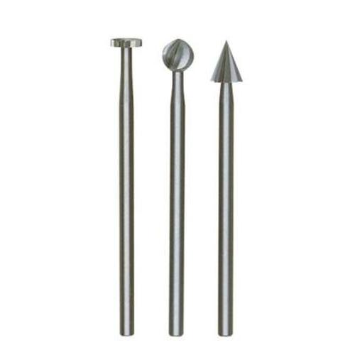 Selected tungsten vanadium steel. Purposely made of stable construction with head and shaft out of a single blank. The precise flutes and optimal concentricity ensure best life expectancy. For use on hard and soft woods, NF and precious metals, as well as plastics and plaster of paris. Ideal for milling, routing, shaping, profiling and slotting. All shanks Ø 3/32" (2.35mm).