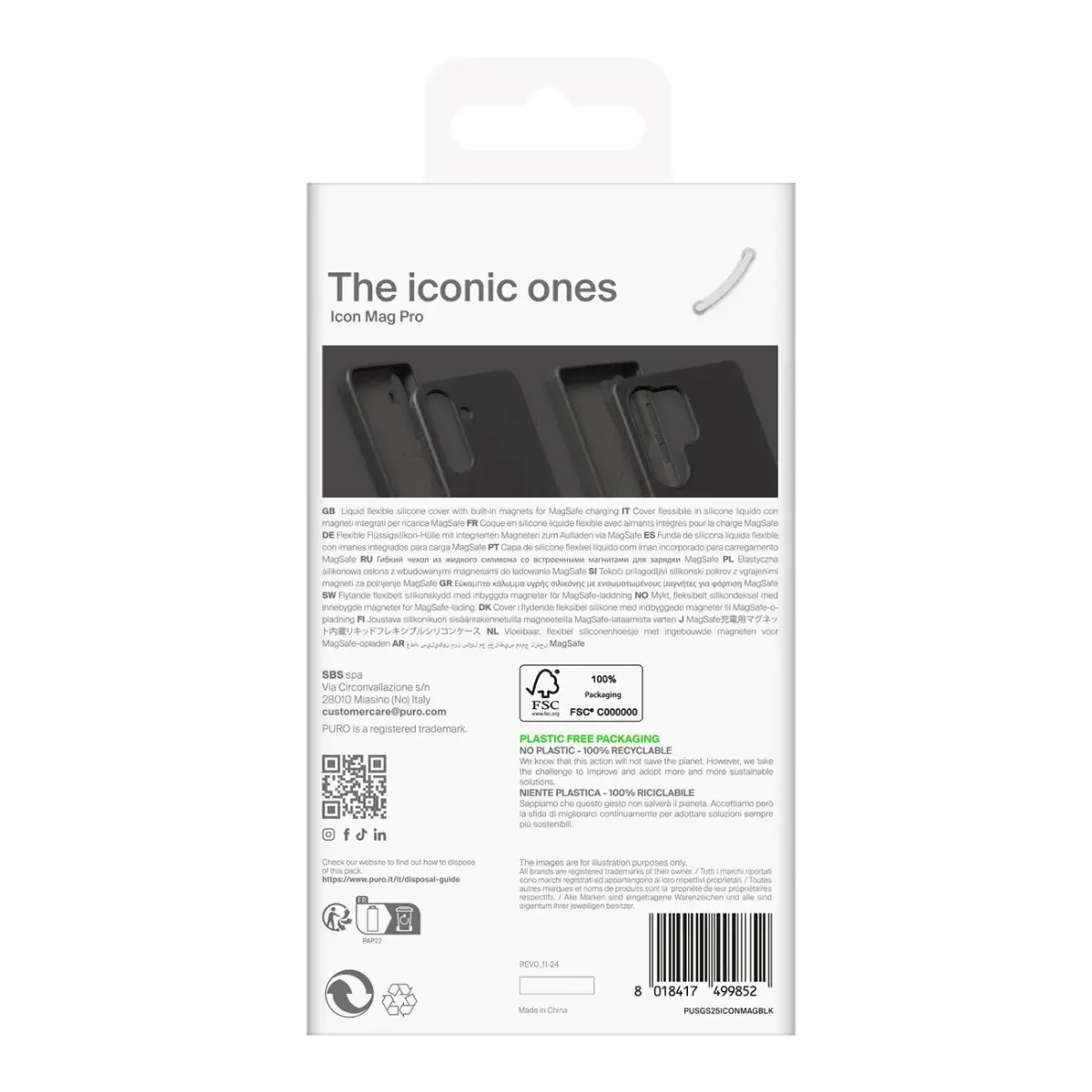 Puro Icon Mag Silicone Case with MagSafe for Samsung Galaxy S25 Ultra - Black Discover the Puro Icon Mag silicone case with MagSafe, which perfectly combines modern design with the highest functionality. Designed specifically for the Samsung Galaxy S25 Ultra, this case offers exceptional protection for your phone while emphasizing its elegant appearance. Thanks to its compatibility with MagSafe technology, you gain the convenience and speed of wireless charging. Made of a material that is pleasant to the touch, it provides comfort of use every day. High quality workmanship and precise fit to the device are a guarantee of durability and reliability. Specification: Brand: Puro Series: Puro Icon Mag Material: TPU + PC Technology support: MagSafe Compatibility: Samsung Galaxy S25 Ultra The most important advantages of the Puro Icon Mag silicone case: MagSafe Compatibility:Â It enables fast and hassle-free wireless charging, ensuring convenient use every day. Perfect protection:Â The durable silicone finish effectively protects your device against scratches, impacts and dust. Matching your phone model:Â Precisely designed for the Samsung Galaxy S25 Ultra, it ensures a perfect fit and full access to all buttons and ports. High quality workmanship:Â Carefully selected materials guarantee durability and stylish appearance for a long time. Material pleasant to the touch:Â Soft-touch silicone makes the case pleasant to use while providing a secure grip. MagSafe compatibility for convenient charging Thanks to built-in magnets, the Puro Icon Mag case works perfectly with MagSafe accessories, allowing for quick and easy charging. It's a great solution for people who value practicality and modern technology. Perfect protection in every situation The silicone case effectively protects your phone from everyday threats, such as scratches, shocks and falls. The solid construction ensures long-term safety of your device. Perfect fit for Samsung Galaxy S25 Ultra Every detail of the case has been precisely crafted to perfectly fit the Samsung Galaxy S25 Ultra. Hassle-free access to ports and buttons guarantees full functionality of the device. Style and quality that make an impression Elegant, black design and high-quality materials mean that the Puro Icon Mag case not only protects, but also highlights the unique style of your phone. Soft and pleasant to the touch material The unique silicone material guarantees a pleasure of use and a firm grip, eliminating the risk of the phone slipping out of your hand.