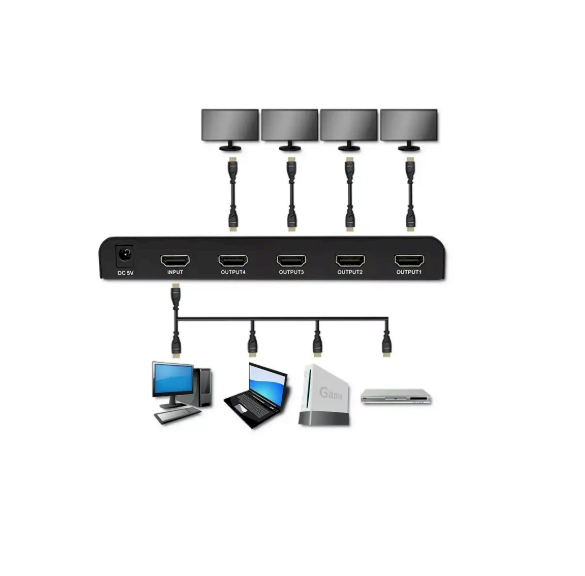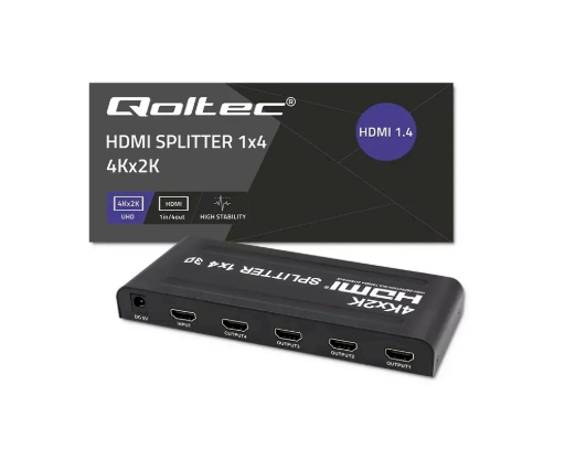 QOLTEC 51798 on HDMI-jagaja, millel on üks HDMI-sisend ja neli HDMI-väljundit, mis on mõeldud ühe signaali jagamiseks mitmele ekraanile kvaliteedikaotuse vältimiseks. See toetab kuni 3840×2160 pikslini ulatuvaid resolutsioone ja kuni 3,4 Gb/s ribalaiust selge ja stabiilse signaaliedastuse tagamiseks.