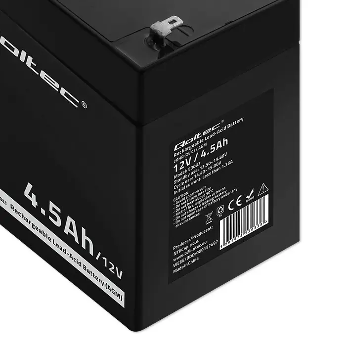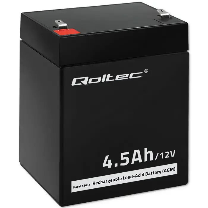 Qoltec AGM aku | 12V | 4,5Ah | Hoiuseta | Tõhus | PikkAeg | UPS-i, kaalu, kassa jaoks (5901878530338)