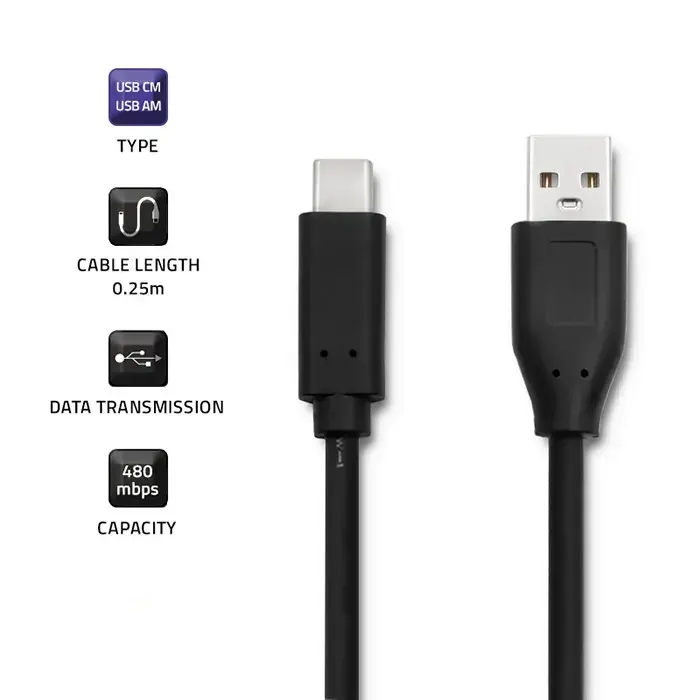 Qoltec USB 3.1 Type C isane pistik | USB 2.0 A isane pistik | 0,25 m (5901878504964)