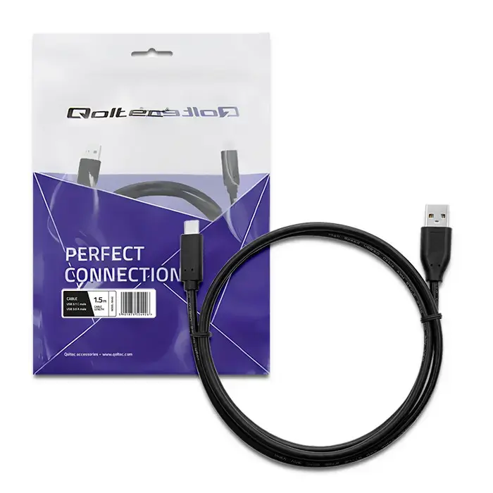 Qoltec USB 3.1 type C-tübis meestest pistik | USB 3.0 A-tübis meestest pistik | 1,5 m (5901878504926)