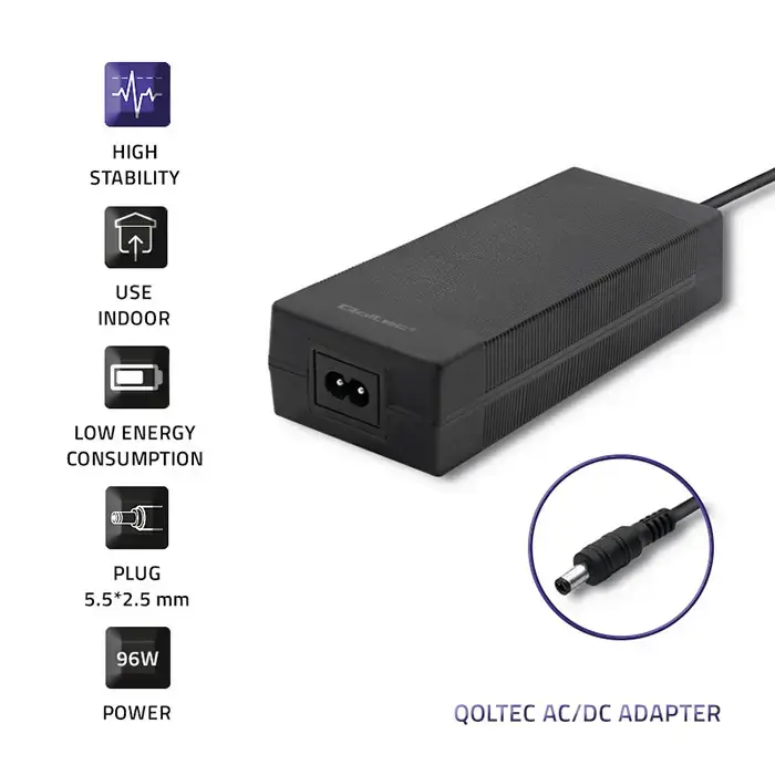 Qoltec Tarkvarutoiteplokk 96W | 24V | 4A | 5.5*2.5 + toitekaabel (5901878507941)