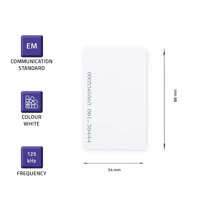 The EM proximity card from Qoltec is compatible with all 125 kHz readers. To use the card, simply bring it close to the reader. Used for access control in proximity readers, code locks, intercoms and video intercoms .