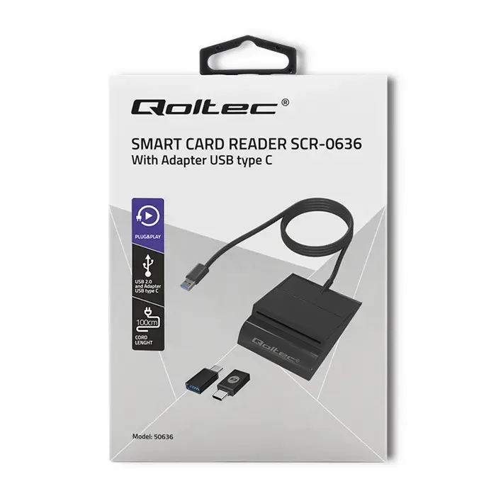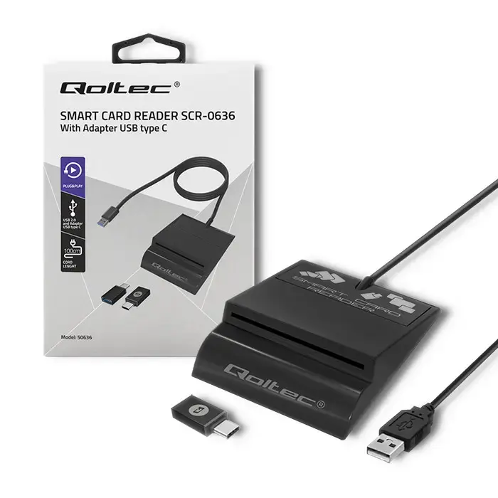 Qoltec Nutikas Smart ID kiibikaardi lugeja SCR-0636 | USB 2.0 + USB-C adapter (5901878506364)
