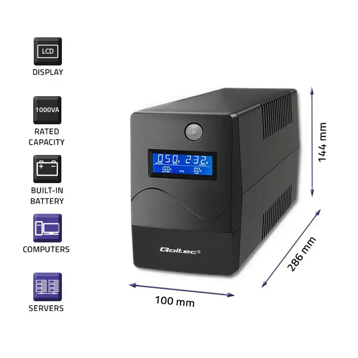 The Qoltec Line Interactive UPS power supply is a modern device that ensures stable operation of the connected computer even in the event of a power outage. Its features include: