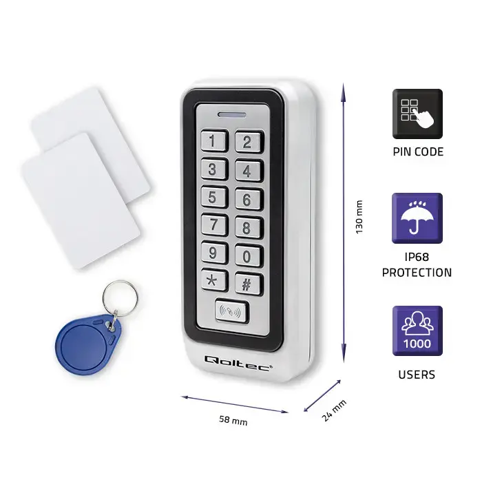 Qoltec Koondlukk TRITON koos RFID-lugejaga Kood | kaart | nutivõti | IP68 | EM (5901878524436)