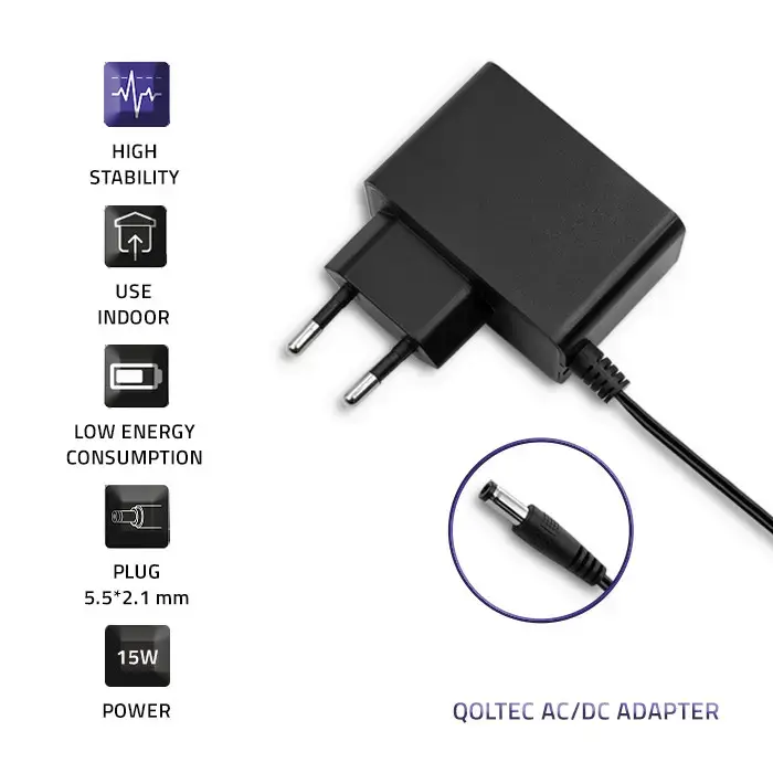 The Qoltec Plug-in power supply is a guarantee of safe power supply and use. It is characterized by high efficiency, which reduces energy consumption.