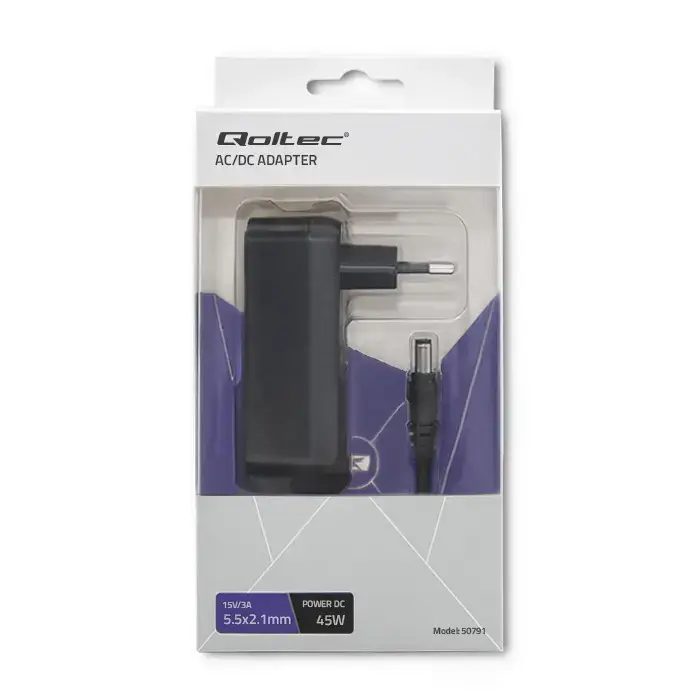 Qoltec Pistikupistik toiteallikas 45W | 15V | 3A | 5.5*2.1 (5901878507910)