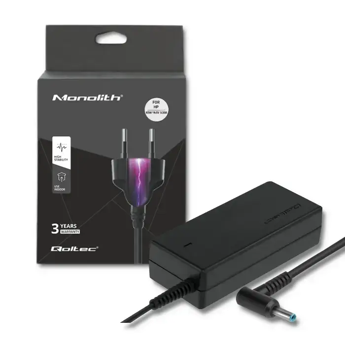 Qoltec Toiteadapter sülearvutile HP 65W | 19.5V | 3.33A | 4.5*3.0+pin | +toonekabel (5901878500515)