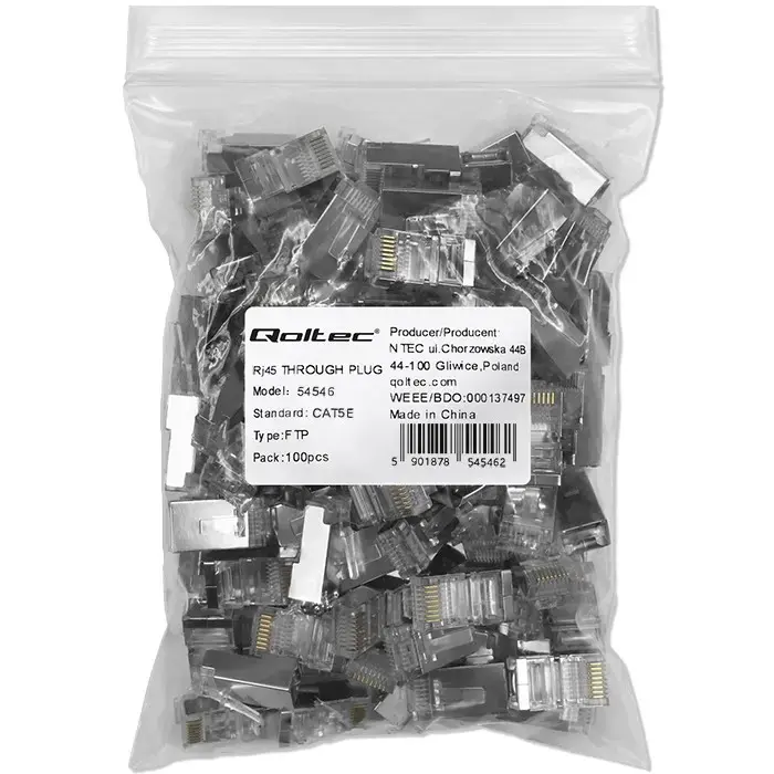 Qoltec RJ45 siiniühendusvahend | CAT5e | FTP | Läbiühendus | Kuldne kontaktpind | 100 tk (5901878545462)