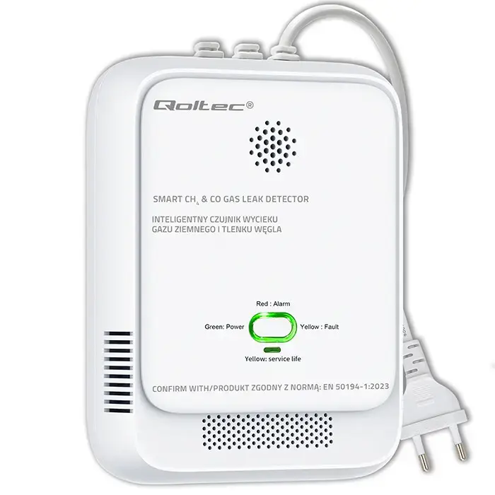 Qoltec Sertifitseeritud juhtmeta gaasileke (CH4) ja süsinikmonoksiidi (CO) detektor | alarm 85dB | LED (5901878525785)
