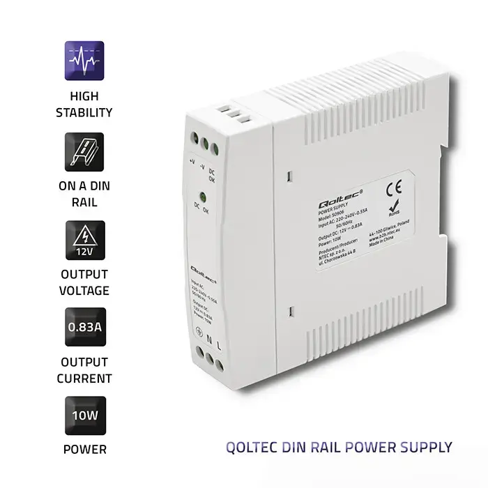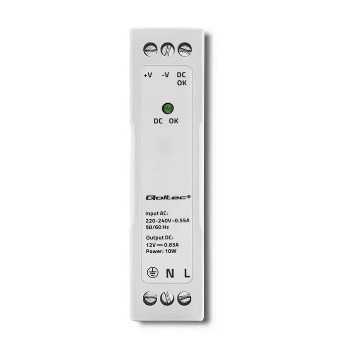 Qoltec SIINE rööpsu toiteallikas | 10W | 12V | 0.83A | Valge | Salendatud (5901878509068)