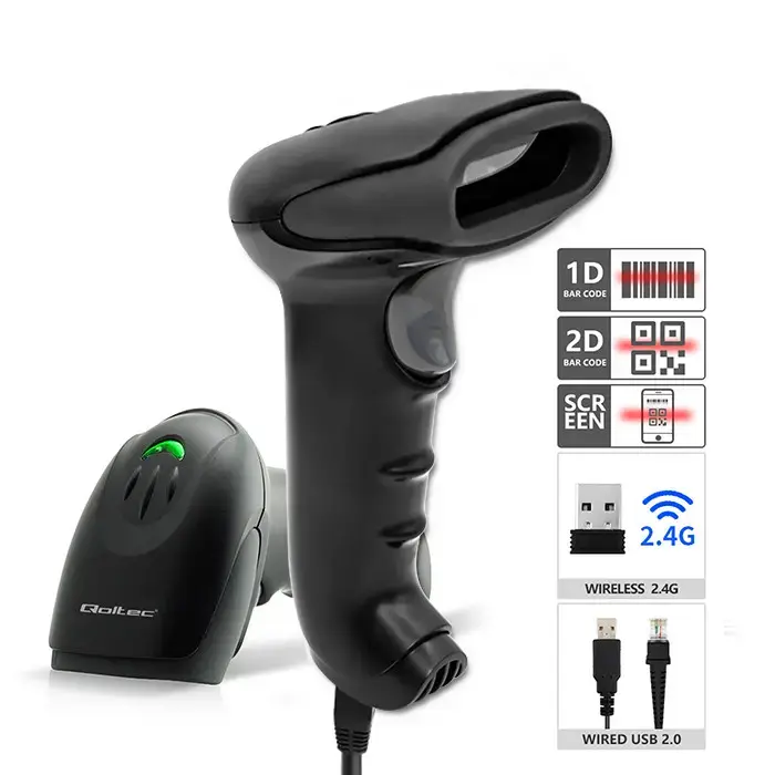 Qoltec Traadita barjääni lugeja ja QR-koodiskanner | 1D 2D | USB | 2.4G | Kiire (5901878508689)