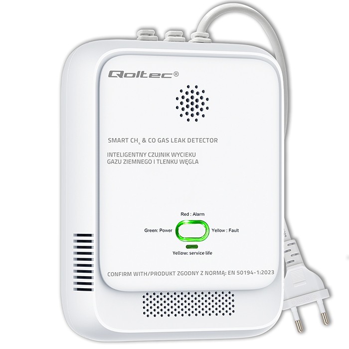 Qoltec Tuumetega gaasdetektor, mille eluiga on 5 aastat, millel on 85 dB südamekäik ja LED valgus (52578)