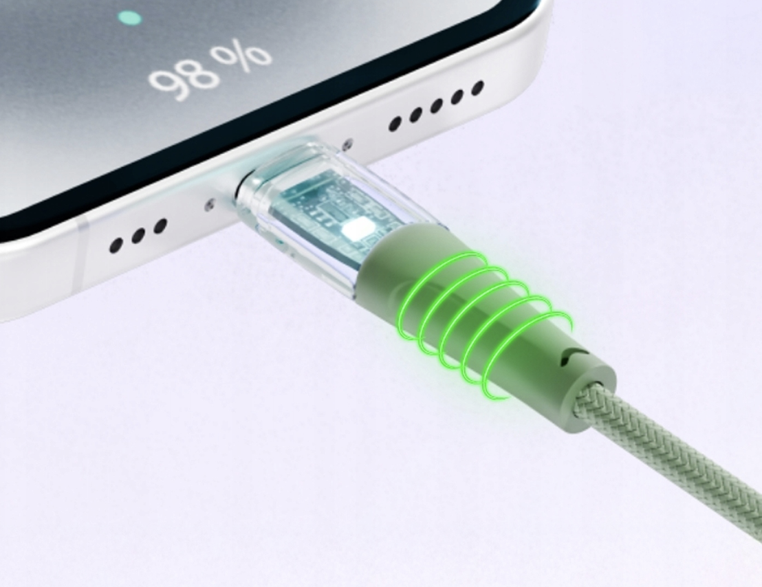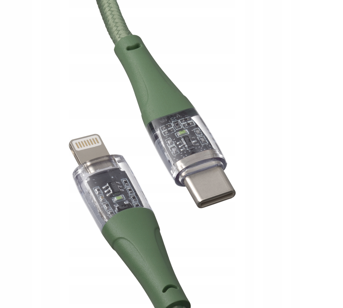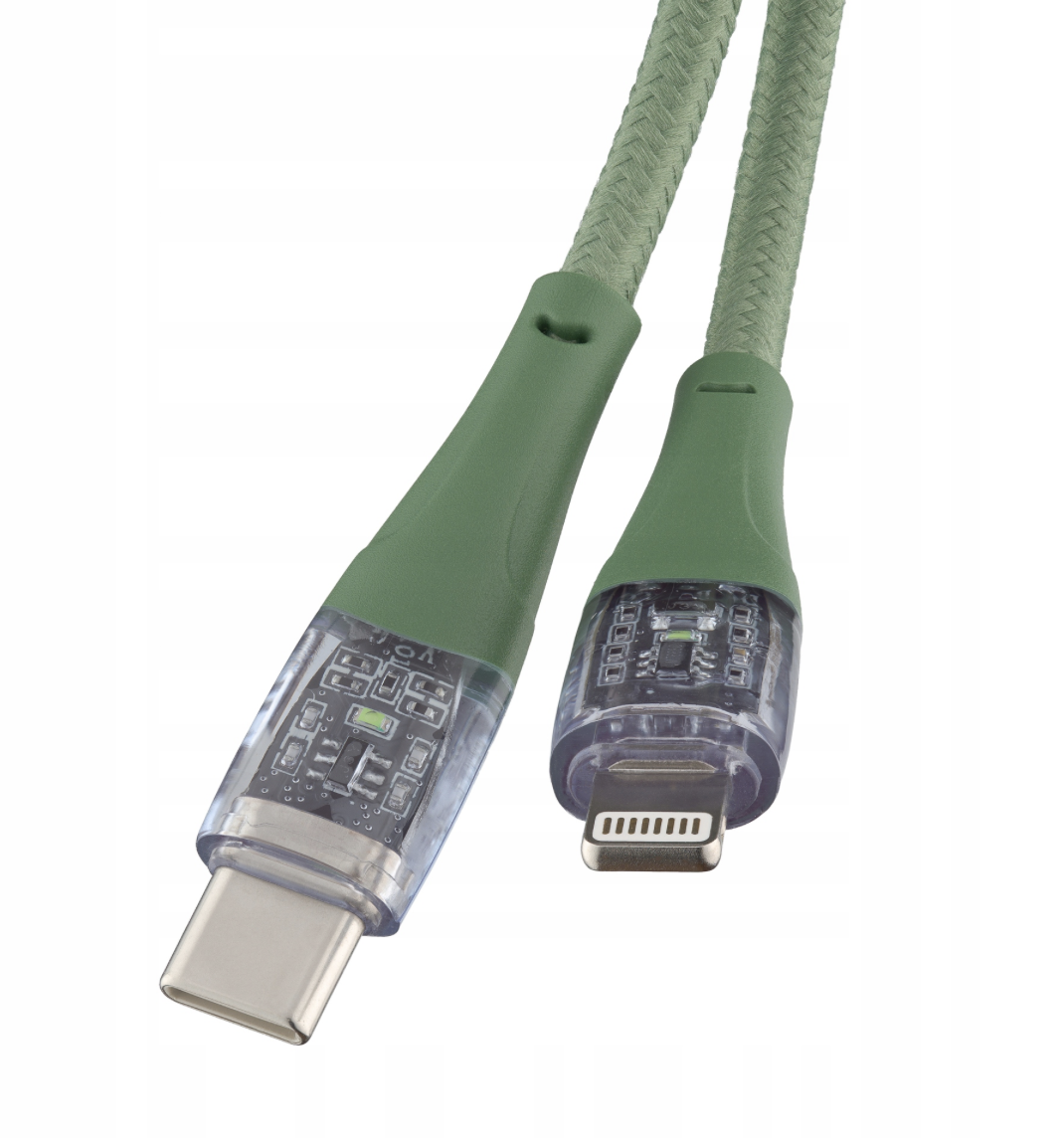 Qualo QTCN-CL-04 Läbipaistev nailonist kaabel USB-C - Lightning / 12W / 1,5m / roheline