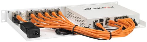 The RM-FR-T15i gives you the ability to mount your Fortinet desktop appliances in a 19" rack. The rack is tailored specifically for the listed models to guarantee a perfect fit. In addition, the connections are brought to the front for easy access, as well as the console port. The power supply is fixed to prevent an accidental loss of power.
