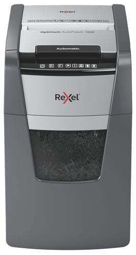 REXEL Optimum AutoFeed+ 150X paberi hävitaja Ristsuhumming 55 dB 22 cm Must, Hall (2020150XEU)