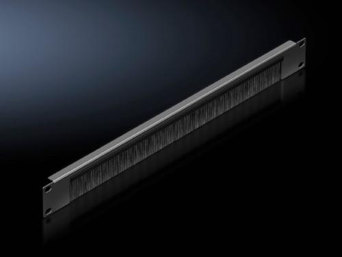 With cut-out 390 x 40 mm (2 U) or 390 x 20 mm (1 U) with brush insert, accommodation facility for cable clamp straps.Rittal 5302.202. Type: Cable management panel, Product colour: Black, Housing material: Steel. Size (imperial): 48.3 cm (19"), Width: 390 mm, Height: 30 mm. Quantity per pack: 1 pc(s), Package weight: 243 g