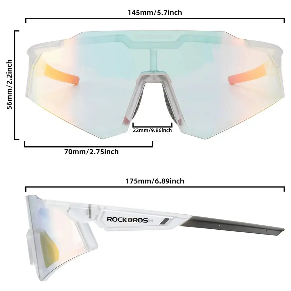 Rockbros SP291 photochromic cycling glasses - white Forget about compromising comfort and protection when cycling. Rockbros SP291 combine lightness, durability and advanced UV protection, offering unrivaled quality and style. These glasses are more than accessories - they are an essential piece of equipment for every cyclist who values safety and comfort. Specification: Brand: Rockbros Model: SP291 Material: PC UV filter: UV400 Weight: 30g Included: 1x glasses 1x case 1x cleaning cloth 1x overlay for corrective lenses The most important advantages of Rockbros glasses: Exceptional lightness ensures wearing comfort . Thanks to the weight of only 30 g, the glasses are almost imperceptible on the face, which allows for long hours of riding without feeling any discomfort. Resistance to external influences . The flexible material and impact resistance ensure that the glasses will withstand even the harshest conditions. Full protection against UV radiation . The UV 400 filter effectively blocks harmful UVA and UVB radiation, protecting your eyes even on the sunniest days. Lightness The extremely light Rockbros SP291 glasses, weighing only 30g, provide unrivaled wearing comfort. Long bike routes or intense workouts become more pleasant when you don't feel the weight on your nose and temples. Resilience The flexibility of the material and impact resistance guarantee that Rockbros SP291 glasses are ready for any challenge. You can safely use them in difficult off-road conditions or while driving dynamically around the city. UV protection With UV 400 filters, Rockbros SP291 effectively protect your eyes against harmful UVA and UVB radiation. This is not only protection, but also visual comfort by reducing glare and improving contrast.