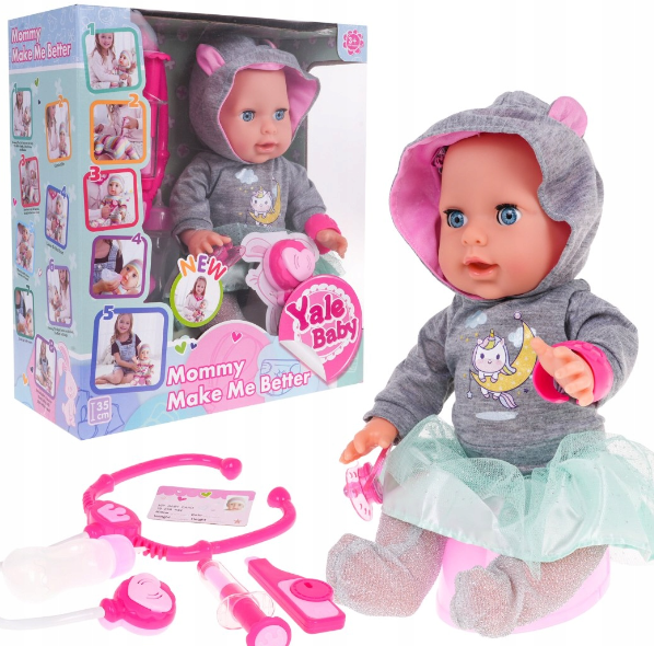Väga interaktiivne nukk lastele alates 3 aasta vanusest. Nukk nutab, sulgeb ja avab silmi, juhtub vett, teeb juttu, liigutab käsi ja jalgu, naerab ja isegi temperatuur tõuseb, aevastab ja köhib. Komplektis on palju aksessuaare, sealhulgas magnetiline tutti ja arsti aksessuaarid. Tänu sellele nukule õppib laps vastutust ja hoolitsema teiste eest. "Haige" nukule saab süsti anda, selle temperatuuri mõõta ja sellele stetoskoobiga kuulata. Mänguasi töötab 3 x AA 1,5 V patareidega, patareid ei kuulu komplekti. Stetoskoop töötab 2 x AG13 patareidega, patareid on komplektis kaasas.