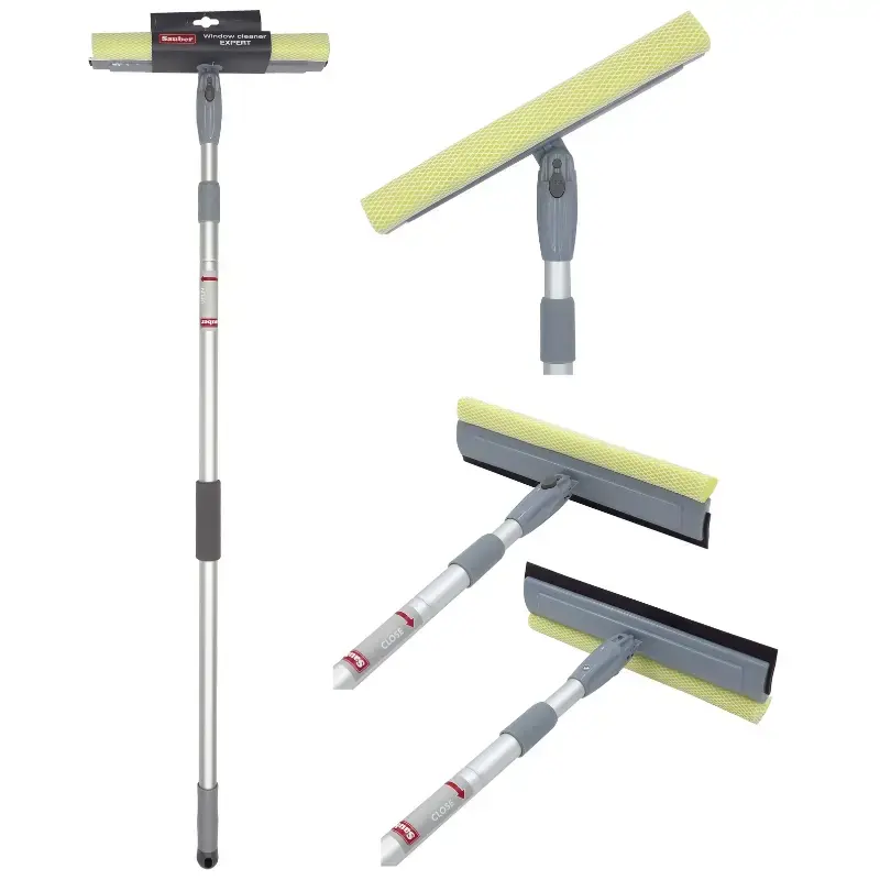 Brush length 30cm. Telescopic handle extends to 190cm. Brush head swivels 45º and locks in position with a button. Brush seam with protective mesh layer for longer and better service life. With window rubber.