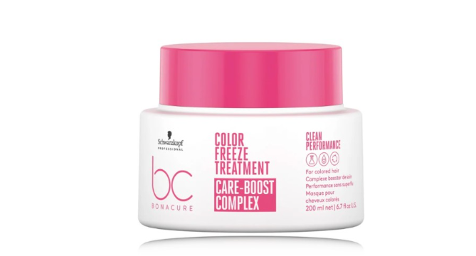 Schwarzkopf Professional BC Bonacure Color Freeze juuksimask 200 ml – intensiivne mask värvitud või toonitud juustele. See lukustab juuksevärvi ja aitab säilitada elavat värvi kauem, kuni 90% värvikiindlusega. Mask normaliseerib juuste pH taseme 4,5-ni, kinnistades värvipigmenti sügavalt juuksekihis, et vältida värvi tuhmumist. Juuksed muutuvad siledamaks, läikivamaks, kergemini kammitavaks, ning neil on niisutatud, terve välimusega pind ja vähem silitas.
