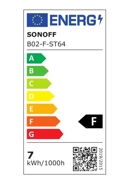 Brand Sonoff Model B02-F-ST64 Colour temperature 1800K-5000K Input AC 220-240V Rated power 7W Base E27 Luminous flux 700lm Product size 64 x 138mm Wi-Fi IEEE 802,11 b/g/n. 2,4Ghz Lifespan about 15000h CRI RA>80 Working temperature -10 to 40°C