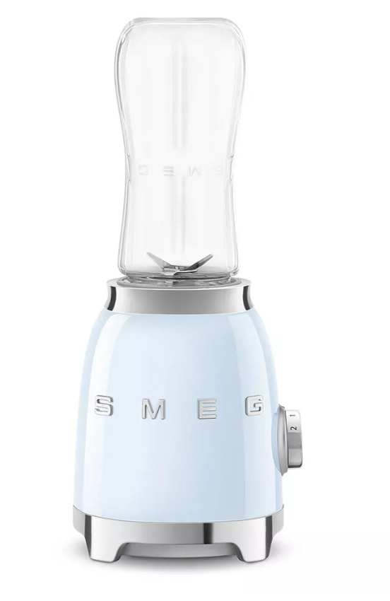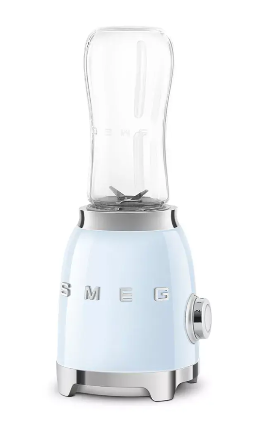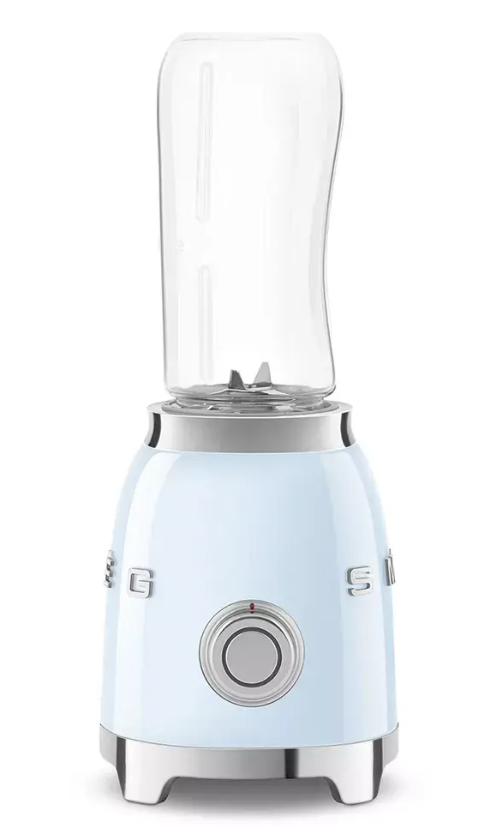 Smeg PBF01PBEU on stiilne ja kompaktne personaalne lauat blender, mis on mõeldud kiiretele ja tervislikele jookidele. 300 W mootoriga segab see tõhusalt smuutisid, milkshake'e ja kergeid segusid. Blenderi komplektis on kaks 600 ml Tritan™ pudelit, mis võimaldavad segada ja jooki kaasa võtta.