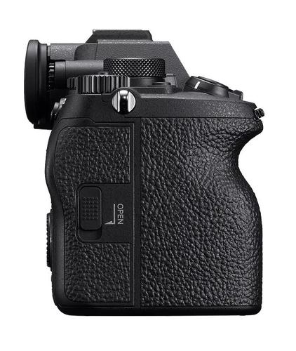 The camera's Quad-VGA OLED viewfinder has roughly 1.6x the resolution of the α7 III viewfinder, with a 37.3° FOV and a 23mm high eyepoint.