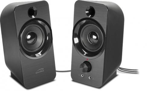 Save space and enjoy sleek design and maximum practicality with a set of compact DAROC Stereo Speakers. They’ll take up hardly any of your precious space, and with their understated design they’ll blend in with any interior. They also feature smart dual-input connectivity on the front for a headset or a set of headphones. This means you can leave the speakers connected to the PC via their two jack plugs and still make video/audio calls or even listen to music undistributed – a huge plus-point, giving you maximum flexibility and saving you from the hassle of having to crawl around under the desk to swap cables.SPEEDLINK DAROC. Recommended usage: PC. Audio output channels: 2.0 channels, Number of drivers: 2. Connectivity technology: Wired. RMS rated power: 6 W, Frequency range: 150 - 20000 Hz, Impedance: 4 Ω. Product colour: Black