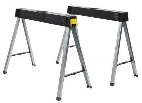 Stanley Fold-Up Sawhorse (Twin Pack). Maximum load weight: 340 kg, Material: Aluminium, Metal, Plastic, Product colour: Aluminium, Black. Width: 101.7 mm, Depth: 12.5 mm, Height (max): 7.58 cm. Number of products included: 2 pc(s)