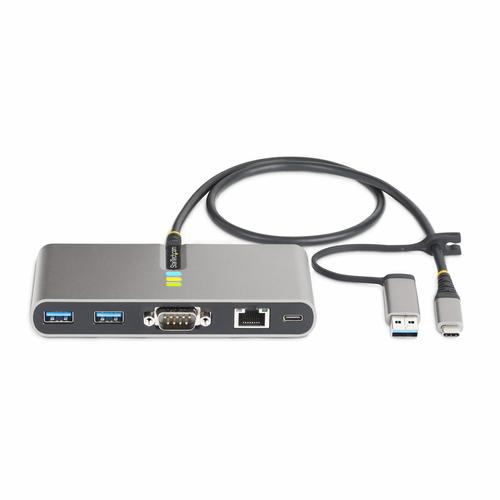 StarTech.com 2-pordi USB-C hubiga Ethernet ja RS-232, kinnitatud USB-C to USB-A adapter, 100W PD läbi, 2x USB-A 5Gbps, Gigabaid Ethernet, RS232 seeria (FTDI) (5G2A1SGBB-USB-C-HUB)