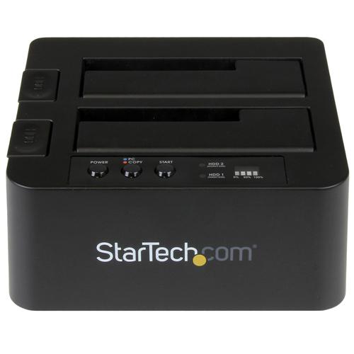StarTech.com Standalone Hard Drive Duplicator, Dual Bay HDD/SSD Cloner/Copier, USB 3.1 (10Gbps) to SATA III HDD/SSD Docking Station, Hard Disk Duplicator Dock, Hard Drive Cloner. Product type: HDD duplicator, Number of simultaneous copies: 2 copies, Interface: USB 3.1. Supported HDD sizes: 2.5,3.5", Supported HDD interfaces: Serial ATA, Serial ATA II, Serial ATA III. Power consumption (typical): 36 W, AC input voltage: 100-240 V, Input current: 1.5 A. Dimensions (WxDxH): 132 x 142 x 70 mm, Weight: 508 g. Package width: 300 mm, Package depth: 166 mm, Package height: 88 mm