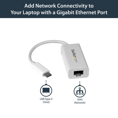 StarTech.com USB-C to Gigabit Network Adapter - White. Connectivity technology: Wired, Host interface: USB Type-C, Interface: Ethernet. Maximum data transfer rate: 5000 Mbit/s. USB powered. Product colour: White