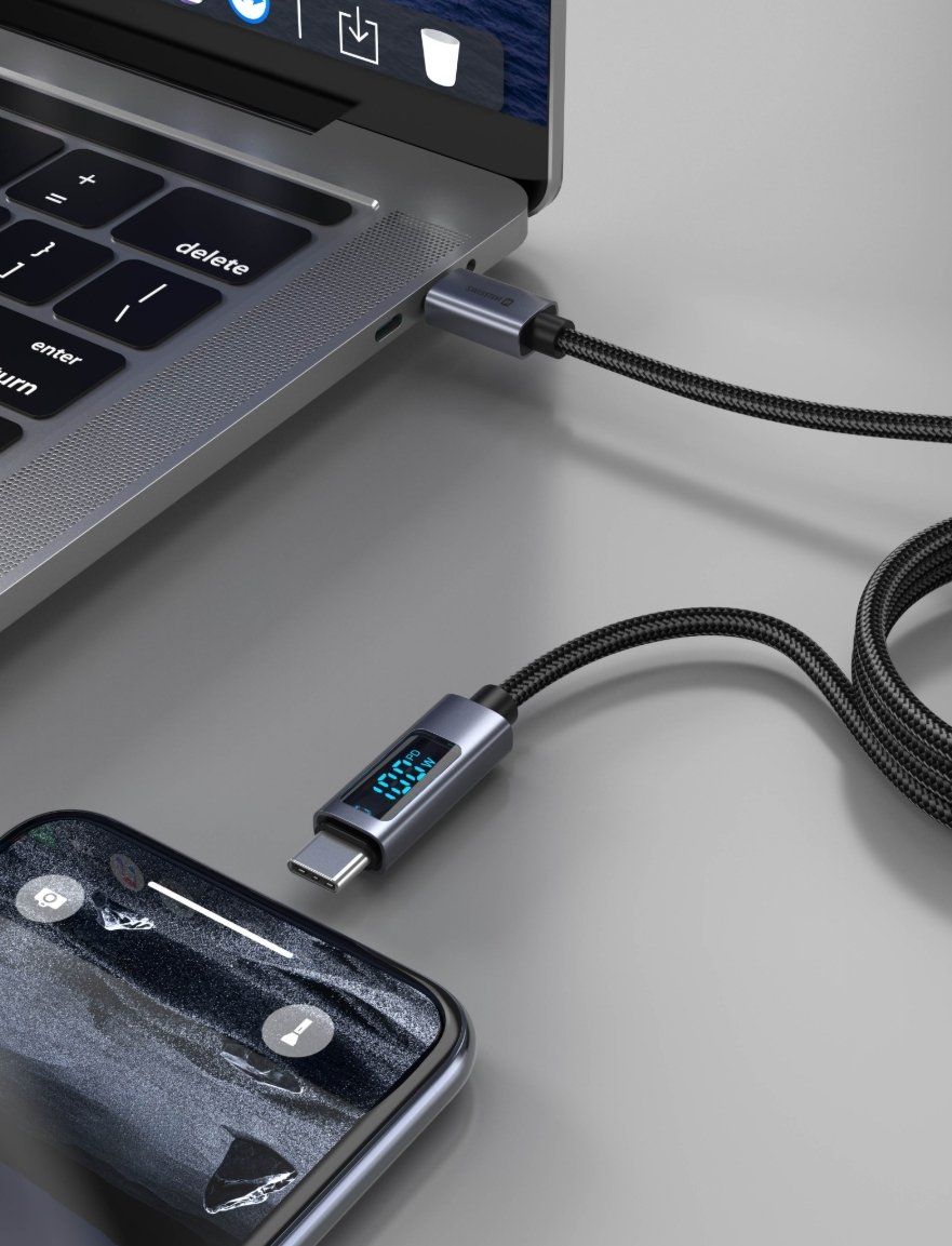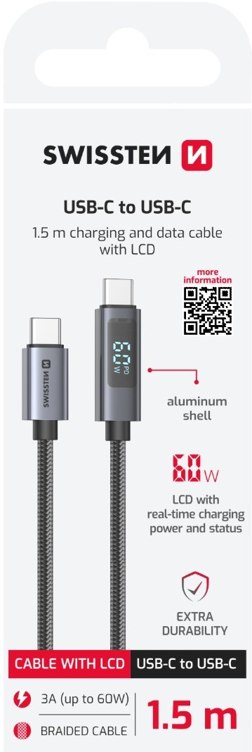 SWISSTEN LCD kabel USB-C - USB-C 1,5 m pakub revolutsioonilise võimaluse seada oma seadme laadimisprotsessi jälgimiseks. Integreeritud LCD ekraan näitab hetkeliselt voolu vattides ja annab teada Power Delivery tehnoloogia, mis lubab teile efektiivselt jälgida laadimiskiirust. Kabel on disainitud maksimaalse kestvuse ja usaldusväärsuse eest, ning tema premium kudumustrahv teeb kindlaks, et kabel on pika aja jooksul kaotamata, isegi korduval kasutamisel. Toetab kiire laadimist kuni 60W, seades kindlaks, et seade laetakse võimalikult lühikese ajaga. Kabeli eelised:LCD ekraan näitab hetkeliselt voolu vattides. Toetab kiire laadimist kuni 60W. Näitab aktiivset Power Delivery mooduli. Kestlikud kudumustrahv maksimaalse eluiga eest.