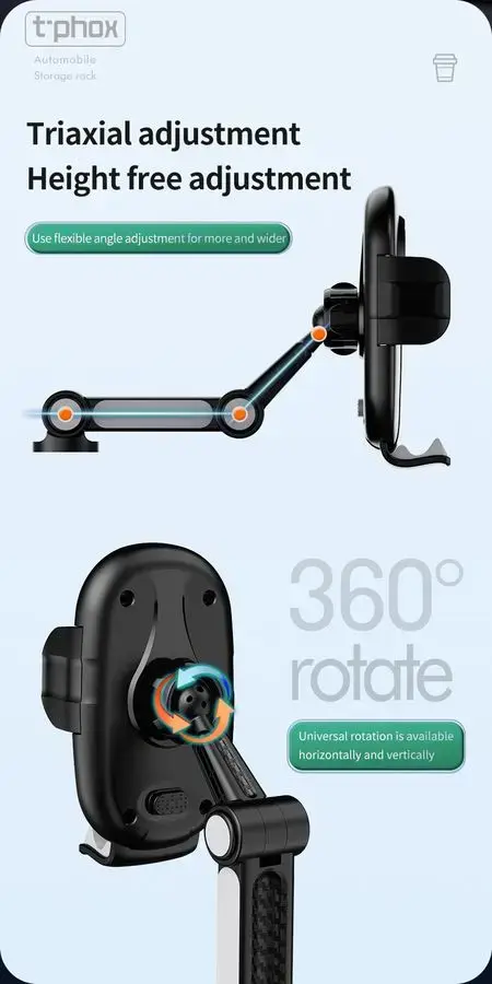 Increase the comfort and convenience of travel with the T-Phox TH-07 mount, which combines the functionality of a phone holder and a cup in one stylish device. 2-in-1 – Phone and Cup Holder: T-Phox TH-07 is an innovative solution for every driver, allowing convenient use of your phone and a beverage while driving. Safely place your smartphone and a cup of coffee or a bottle of water in one place to have everything at hand without distraction. Designed with Versatility in Mind.